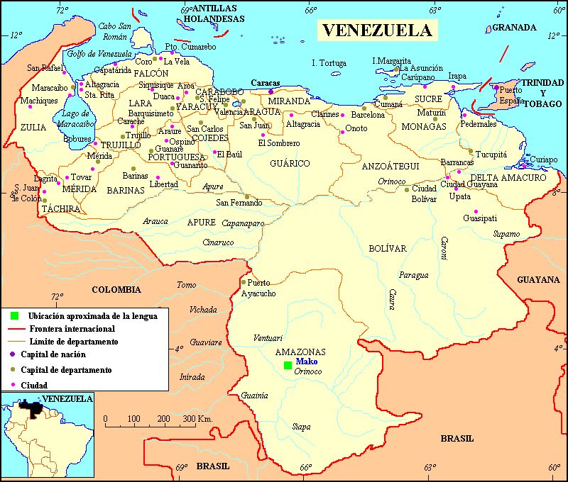 La lengua piaroa-mako (uwotjüja, u'wuthuja, wuöthuja,) autónimo de'aruwa, se habla en el noroeste del estado venezolano de Amazonas, de oeste a este desde el río Orinoco hasta el Manapiare y de norte a sur desde el río Suapure hasta el Ventuari. A causa de la fuerte conciencia étnica de sus hablantes la lengua piaroa se conserva en alto grado. La relación genética entre piaroa y sáliva hay que investigarla más profundamente. En 1992 había 11.540 miembros del grupo étnico. La lengua está potencialmente amenazada. Se habla en el extremo oriental del departamento colombiano de Vaupés, especialmente en la frontera con Venezuela, en las orillas de los pequeños afluentes de los ríos Manaveni, Vichada, Guaviare y Zama, Selva de Matavén, Resguardo Matavén Fruta. Últimamente los piaroa de Resguardo Matavén han tomado medidas para salvaguardar su modo de vida en el futuro, restringiendo la caza y la pesca a gran escala. El grupo étnico consta de 800 miembros, estando la lengua amenazada.
