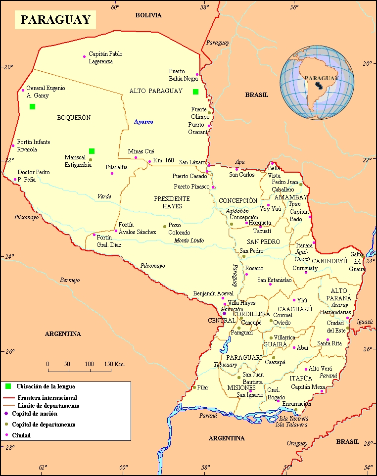 zamuco, morotoco, ayoreode) se habla en la región boliviana del Gran Chaco en el departamento de Ñuflo de Chávez, provincias de Chiquitos, Sandoval y Busch y en la ciudad de Santa Cruz de la Sierra. Según el censo de 1994 había 770 hablantes de la lengua sobre un total de 860 miembros del grupo étnico. Aunque las mujeres mantienen gran fidelidad a la lengua, hay que considerarla potencialmente amenazada. En Paraguay la ayoreo (moro, pyta jovai) se habla en el departamento de Boquerón, en los distritos de Mariscal Estigarribia (Campo Loro), General Eugenio A. Garay y Menno, en el departamento de Alto Paraguay, distrito de La Victoria. Incluso antes de su contacto con la sociedad occidental los ayoreo fueron perseguidos implacablemente. En la primera mitad del siglo XX los jóvenes podían ser eximidos del servicio militar si mataban un ayoreo. El primer contacto tuvo lugar en 1956, cuando los blancos capturaron un muchacho ayoreo. El grupo étnico consta de 815 hablantes de un grupo étnico de la misma cifra. La lengua está amenazada.