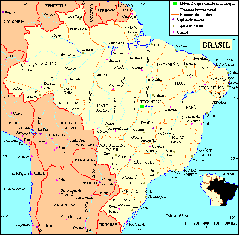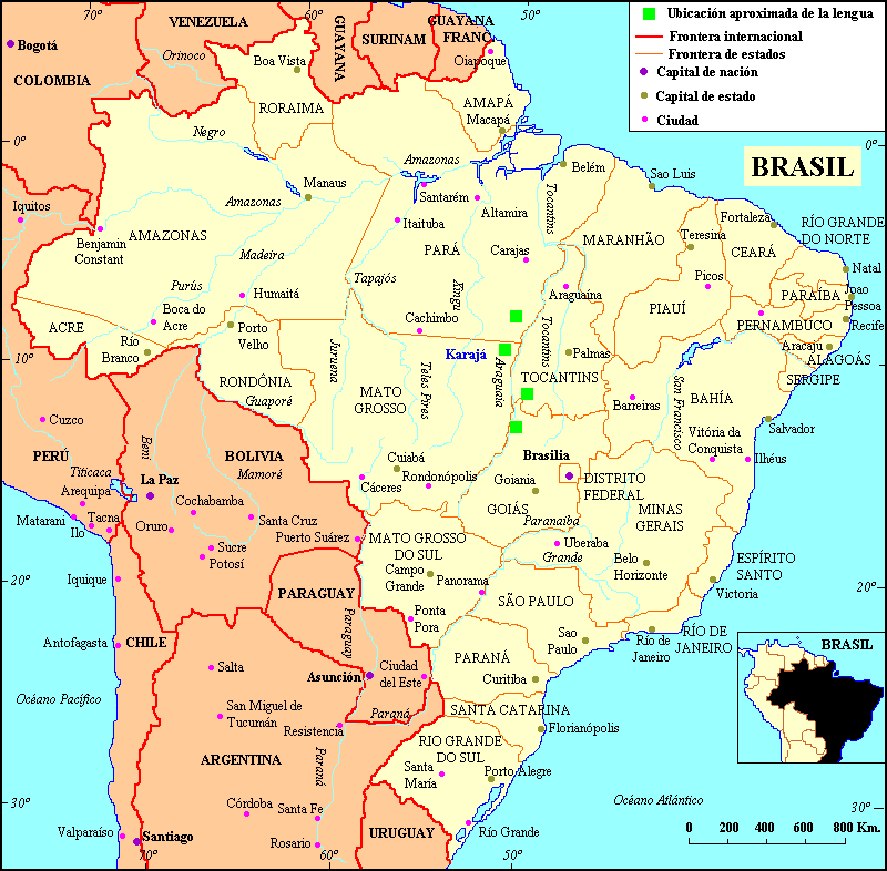 javajé o yava(h)é), hablada en el estado de Tocantins, en las orillas del río Javaés en la costa derecha de la Ilha do Bananal y en su interior, Terra Indígena Parque Araguaia. La lengua está amenazada. Aunque los karajá tienen una larga historia de contacto con los occidentales, todavía preservan su lengua y cultura, si bien el portugués está llegando a ser dominante en algunas localidades, como Aruanã en el estado de Goiás.