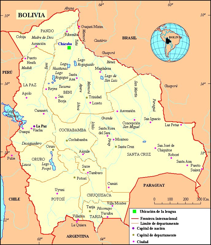 La lengua chákobo (chácobo) se habla en el departamento boliviano de Beni, al noroeste, al sur de Riberalta, en las provincias de Yacuma, Vaca Diez y Ballivián, en las municipalidades de Riberalta, Exaltación y Reyes, en los ríos Ivón, Benicito y Yata. Hay aproximadamente 550 hablantes de la lengua sobre un grupo étnico de 770 personas. Parece ser que el grupo étnico está creciendo en número, pues en 1965 el SIL informaba que había 165 chácobos. Aunque la lengua es vigorosa en zonas remotas, como en la comunidad del alto Ivón, está amenazada.
