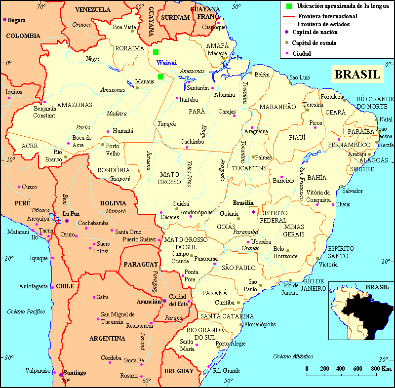 La lengua waiwai (katawiana, parukotó) se habla en el suroeste de Guayana, en las densas selvas de la cuenca del río Essequibo en su curso superior, en una comunidad en el extremo sur del país en Gunn's Strip. La mayoría de los waiwai, unos 1.300, emigraron de Guayana a Brasil tras los sucesos de 1969, asentándose en los estados de Paraná, Roraima y Amapá. Las comunidades en ambos países mantienen lazos, particularmente comerciales y religiosos. Entre los waiwai de Guayana viven los mawayana, un grupo que habla una lengua arahuacana fuertemente influenciada por la caribe. Hay 240 en el grupo étnico lo cual significa que la lengua está seriamente amenazada. La lengua waiwai (wai wai) se habla en el estado brasileño de Roraima, Terra Indígena Trombetas/Mapuera, en una localidad en el río Jatapuzinho, y en los estados de Pará y Amazonas, Terra Indígena Nhamundá-Mapuera, en una localidad en el río Mapuera (Pará) y hay unos pocos hablantes entre los hyxkaryana en el río Nhamindá. El pueblo que ahora son denominados waiwai por los de fuera son un remanente de grupos variados, como los mawayana, hyxkaryana, sikiana y otros. Todos estos remanentes de tribus tienen su propia lengua, pero casi todos los que viven entre los waiwai hablan esta lengua con fluidez. Está potencialmente amenazada, con un grupo étnico de 2.020 personas incluyendo los subgrupos karafawyana, xerey, katuena y mawayana.