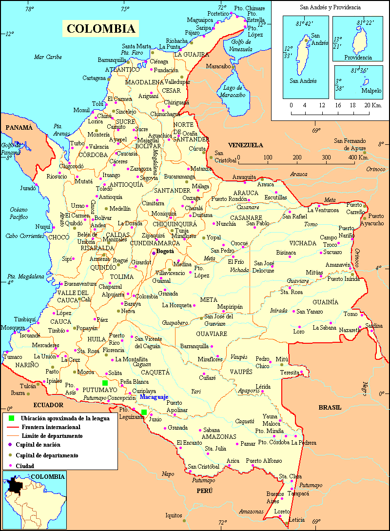 La lengua macaguaje (makaguaje) se habla en el departamento colombiano de Putumayo, en el curso inferior del Putumayo, en El Hacha en la frontera con Ecuador y en los afluentes del río Caquetá, como el Mecaya y Senseya. El grupo étnico consiste de 50 personas pero la lengua puede estar extinguida.
