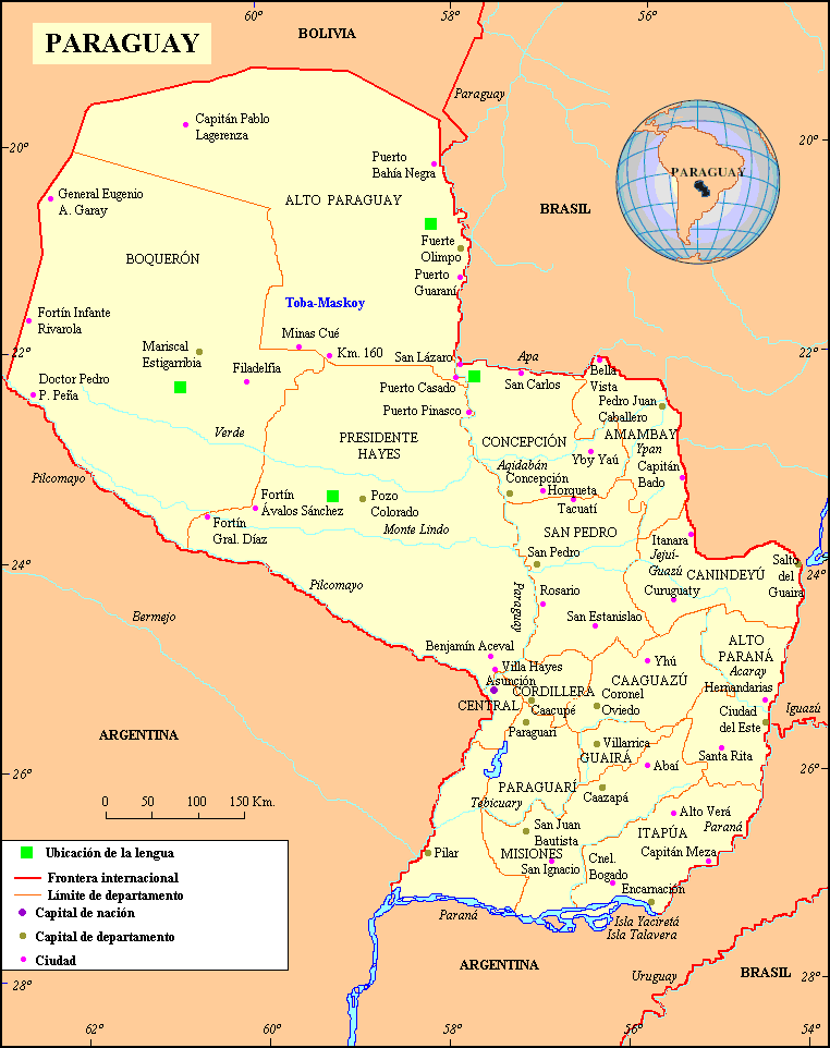 La lengua toba-maskoy (enenxet) se habla en la región paraguaya del Chaco, departamento Presidente Hayes, en los distritos de Pozo Colorado (Casanillo) y Fernheim; en el departamento de Alto Paraguay, distritos de Fuerte Olimpo y La Victoria (Padre Livio Farriña) y en el departamento de Boquerón, distrito de Mariscal Estigarribia y Menno; en el departamento de Concepción, distrito de San Lázaro. Se calcula que hacia 1870 algunos jefes toba argentinos huyeron de las persecuciones que tuvieron lugar en su territorio, asentándose en Riacho Mosquito en el departamento de Alto Paraguay. Aquí supuestamente se transformaron cultural y lingüísticamente en los toba-maskoy. Con 1.280 hablantes de un grupo étnico de 2.055 personas la lengua está amenazada.