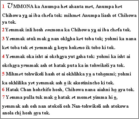 del 11 al 19 auah + unidad; 20 pokoli tuklo, 100 tahlepa achafa. El