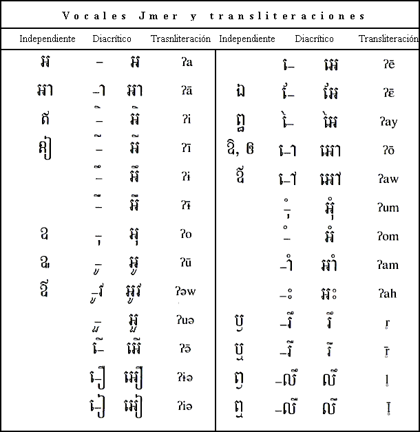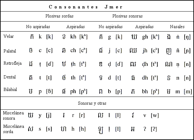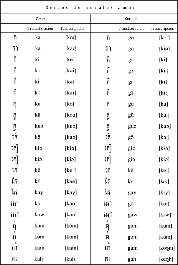 largos y tres cortos. La lengua jmer no es tonal y el acento tónico