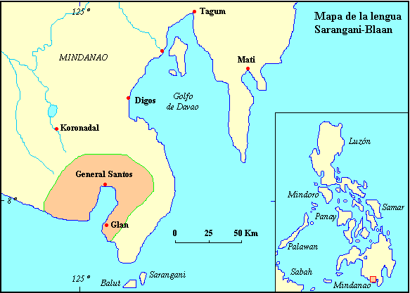 se sitúa en la Península Sarangani, aunque hay bolsas de hablantes al