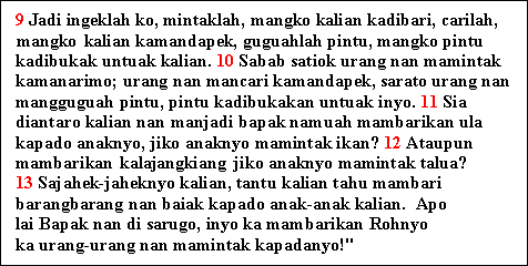 baa/ma '¿qué?'. El relativo es nan, como rumah nan baru dibuek 'la casa que acaba de ser edificada'. La numeración