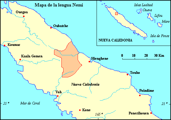 septentrional de Nueva Caledonia, en el lado nororiental de la costa y del
