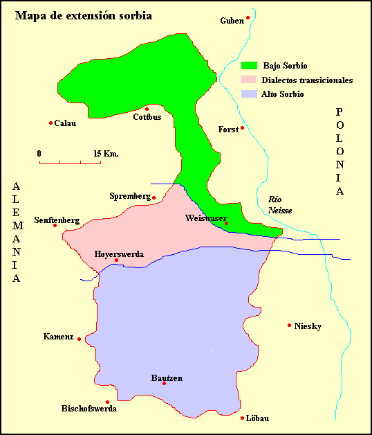 sur) y el alemán (al oeste). Por lo tanto el sorbio era hablado en la