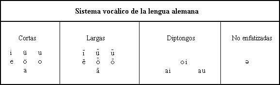 u como ü, y de la ö; las vocales largas son tensas, las breves relajadas; la articulación linguogutural de la
