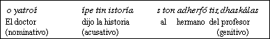 griego moderno. Los nombres pueden ser singulares o plurales, pues el