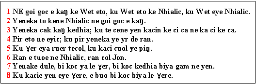 (ye)ngu '¿qué?'. El pronombre relativo es e/ye/ke. El orden de la oración es sujeto,