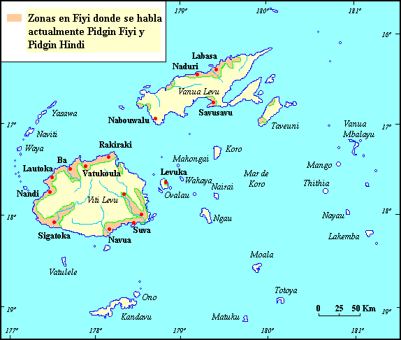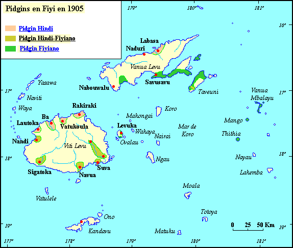 En Fiyi se usa una forma de pidgin de la lengua hindi para comunicarse entre algunos hindúes y también entre nativos e hindúes. El número total de hablantes asciende a 50.000 personas.