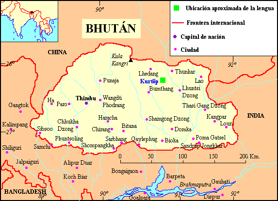 La lengua kurtöp se habla en el distrito butanés de Lhüntsi, cerca de la frontera tibetana, al oeste del río Kurichu. Tiene unos 1.000 hablantes y está potencialmente amenazada.