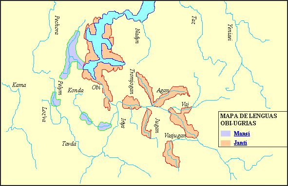 afluentes del bajo Obi, en el lado siberiano de los Urales y los dialectos
